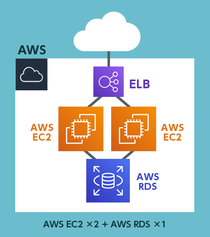 AWS EC2にRDS(DB)を足した構成です。データベースを利用するコンテンツに最適です。
